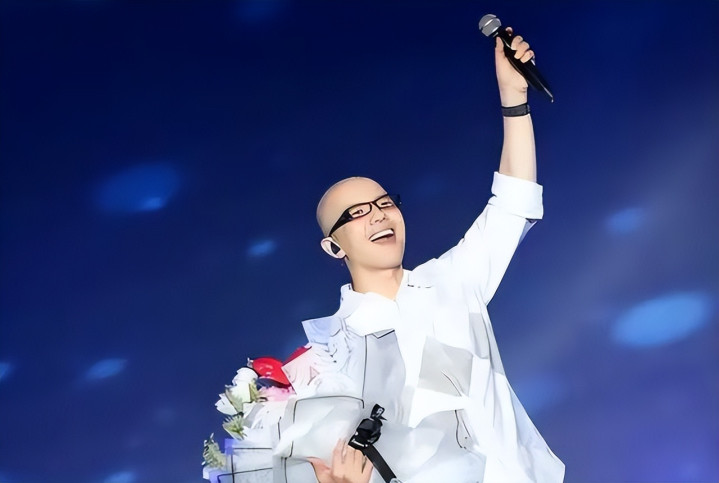 2013年蛇年春晚首秀,唱《我爱你中国》,声音厚实有穿透力,观众记住了这个光头歌手。之后他频繁上央视节目,当评委,发行单曲。